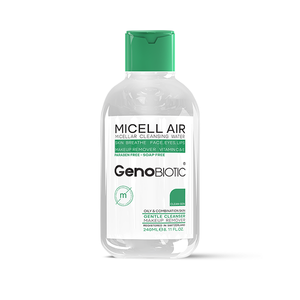 میسلار واتر ژنوبایوتیک مخصوص پوستهای چرب و مختلط، پاک کننده عمیق منافذ پوست از انواع آلاینده هاست چرا که عصاره دانه مورینگا در ساخت آن به کار رفته. همچنین این محصول با داشتن عصاره جلبک لامیناریا به سلول های پوست صورت انرژی می رساند و در نتیجه موجب شادابی شما میشود. از دیگر مواد به کار رفته در این محصول می توان به ویتامین E و C  اشاره کرده که خاصیت آنتی اکسیدانی دارند و موجب افزایش شادابی و سلامت پوست شما می‌شوند.